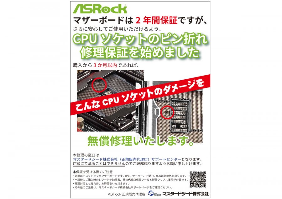 Asrock Japan 昨夜少し話題になっていた Asrockマザーボードのサポートについて 簡単に書いておくよ 2年 保証にソケットピンの保証を一番最初に始めたメーカーです ガチで採算度外視サポートです 初心者から久々の自作erにもオススメだぜ 拡散rt